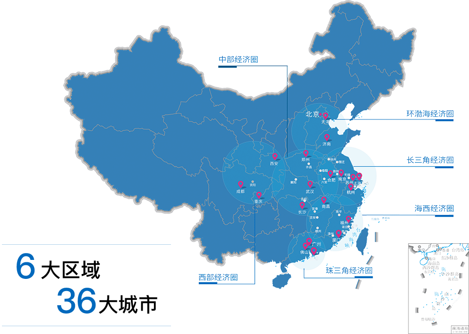 秉持城市群深耕戰略,已投資布局長三角、環渤海、中部、西部、海西和珠三角六大經濟區域,落子上海、 南京、福州、蘇州、合肥、天津、濟南、武漢、長沙、南昌、鄭州、西安、成都、佛山等35座城市。